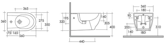 Biochimenea de diseño de pared de bioetanol negra 90 x 26 x h 50 cm