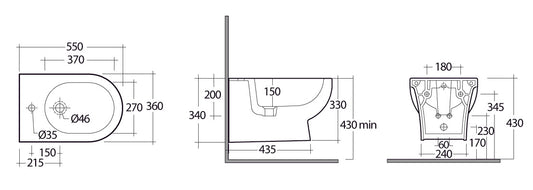 Biochimenea de diseño de pared de bioetanol negra 63 x 15,5 x h 45 cm