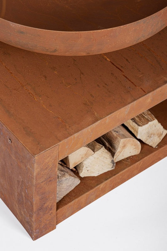Braciere con Porta Legna Efesto Nero 70x38h in Acciaio