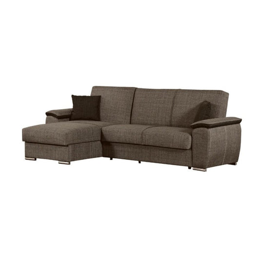 Divano con penisola reversibile in legno e tessuto Tortora GINEPRO 279x123x h60 cm