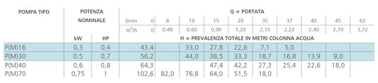 Electrobomba periférica Lowara Serie P - 0,60 Kw 0,80 Hp