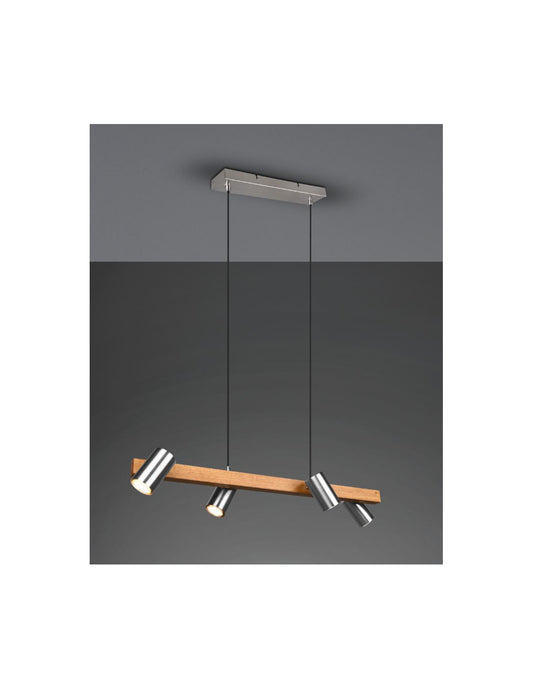 Araña lineal en madera y níquel 4 focos cilíndricos orientables Marley Trio Lighting