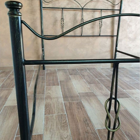 Letto singolo in ferro battuto con pediera Nero Oro PAPAVERO 90x201x h126 cm EFFEZ