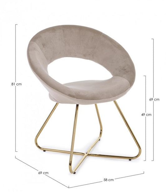 2x Sillón Vanity de terciopelo gris tórtola y patas doradas
