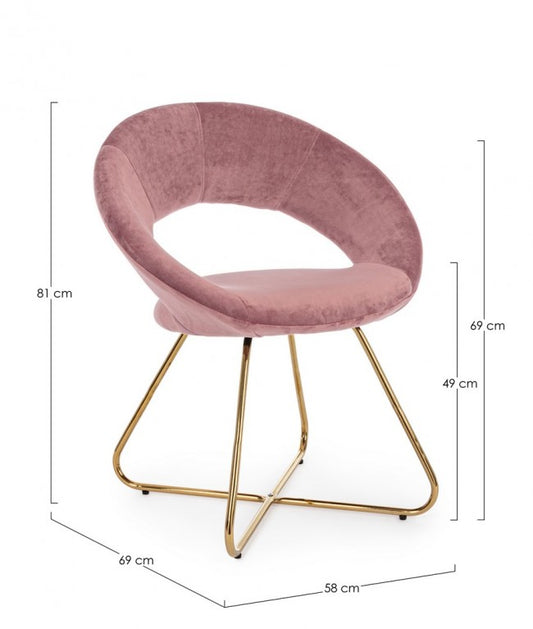 Sillón de salón vintage de terciopelo rosa antiguo ADELINE 60x67x h79 cm