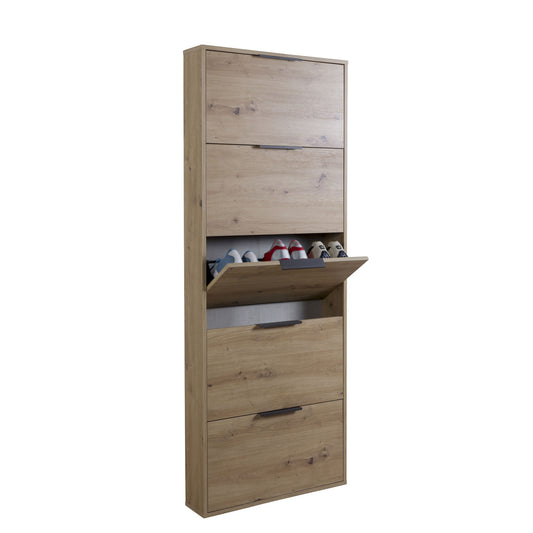 Scarpiera con 4 ante in rovere quercia, dimensioni 65 x 25 x h 146 cm