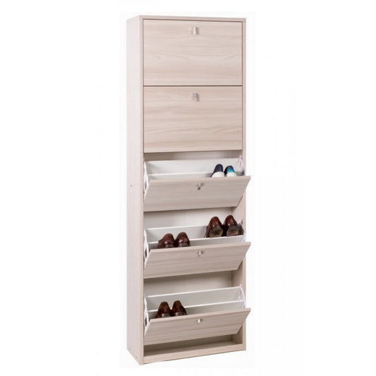 Zapatero delgado de cinco puertas que ahorra espacio en Light Olmo 63x29x h190 cm