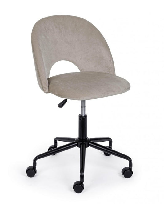 Silla de oficina gris paloma en terciopelo y base de acero.