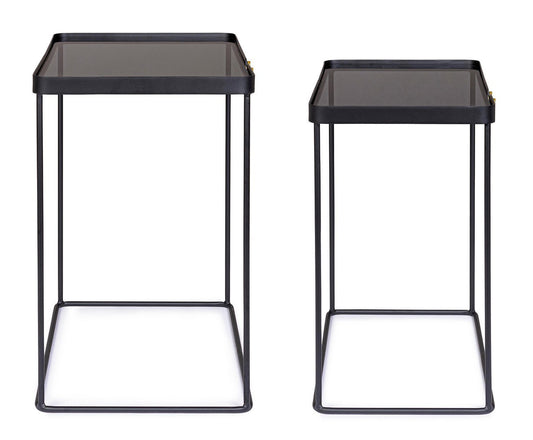 Juego de 2 mesas de centro rectangulares de acero negro Zeina