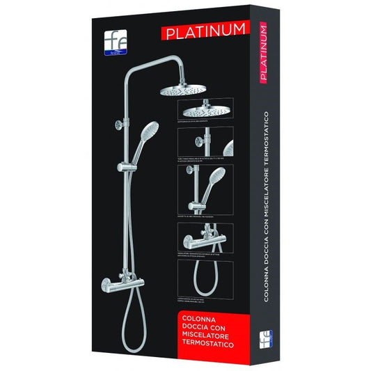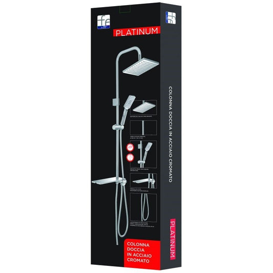 Conjunto columna de ducha de acero cromado con estante desviador central
