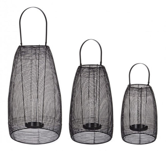 Juego de 3 faroles de acero NUCLEOS en tamaño decreciente