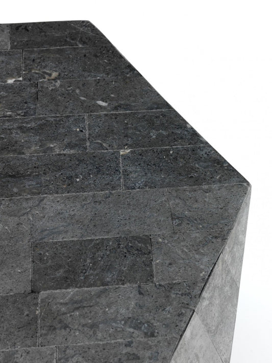 Mesa de centro moderna de piedra fósil gris 120 x 70 xh 40 cm