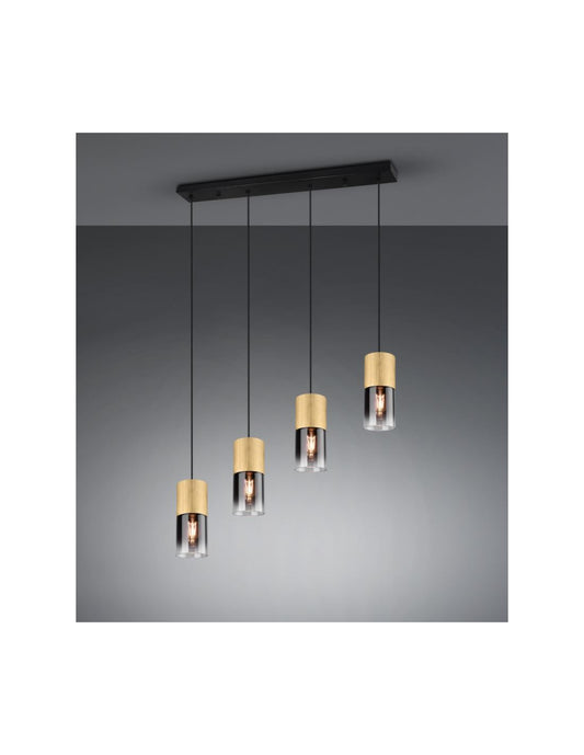Lámpara de araña de barra de madera con 4 pantallas, iluminación Harris Trio de oro negro