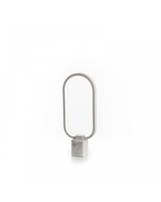 Lámpara de mesa de metal blanco y aluminio con LED integrado 18x h28 cm