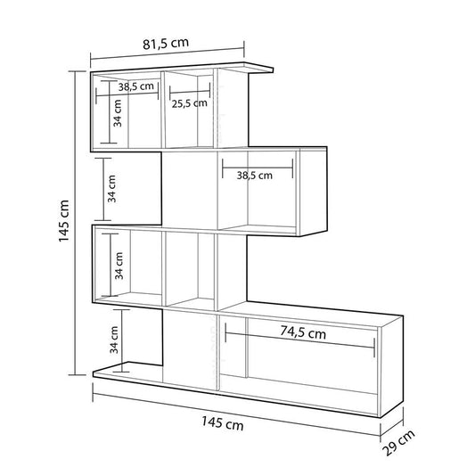Estantería librería 4 niveles 9 compartimentos blanco y roble 145x29xh.145 cm