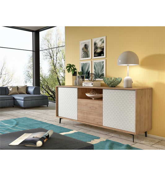 Aparador con estructura de roble y puertas blancas Dama Apertura Push 2 cajones de roble con puertas blancas DAMA