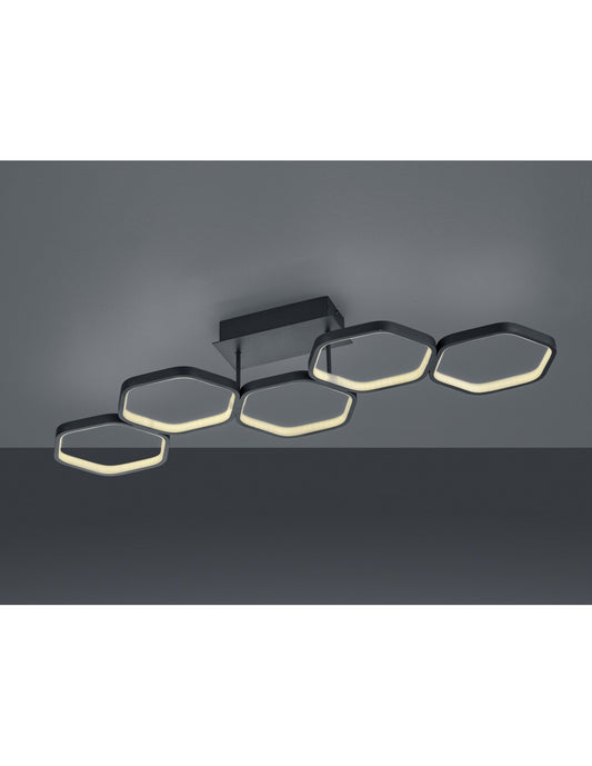 Lámpara de techo LED regulable Vigo 5 Hexágonos L90 cm Antracita Trio Lighting