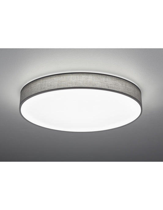 Plafón LED grande con pantalla de tela Gris Lugano Ø75 cm Trio Lighting