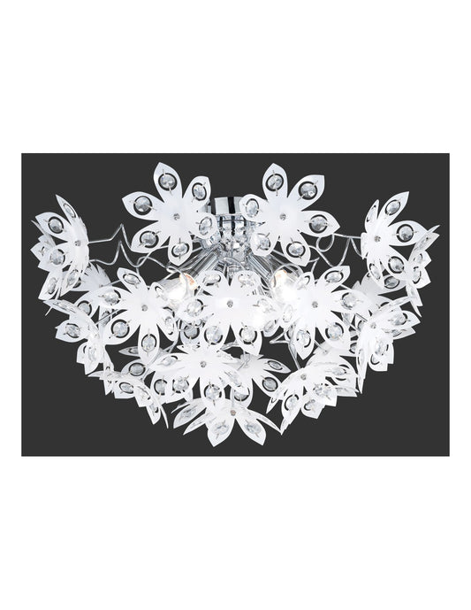 Lámpara de techo Blowball 3 luces cromo flores blancas Ø55 cm Trio Lighting