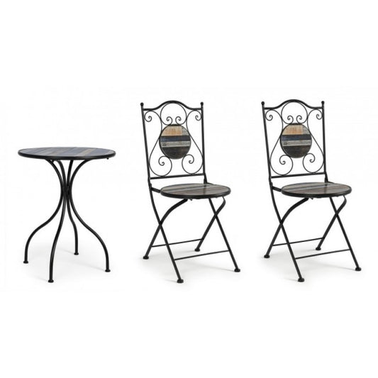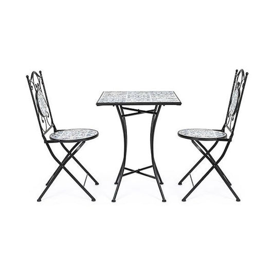 Juego de mesa y 2 sillas de jardín con adornos de cerámica Huston.