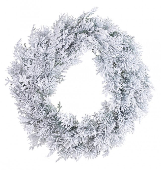 Nevado. Estructura metálica. Material de aguja de PE y PVC moldeado por inyección. Ramas efecto pincel que reproducen la estructura de las agujas de pino.