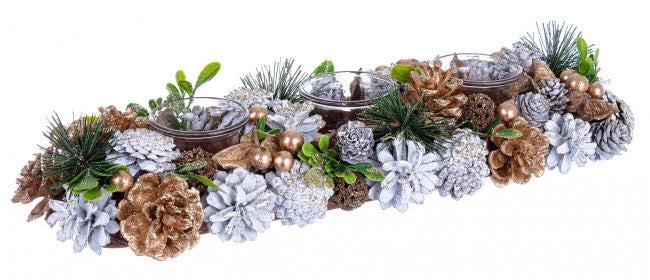- Material: piñas, material vegetal, PVC, PE, vidrio.