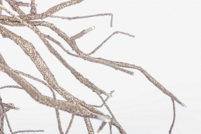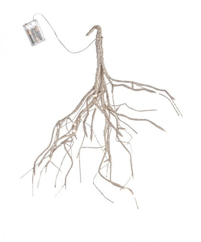 Estructura metálica y revestimiento exterior de papel. Esta rama Beam está equipada con 32 LED de luz cálida, con un tamaño de LED no reemplazable de 3 mm. El cable de alimentación tiene una longitud de 3 metros. Este producto es apto para uso en interiores con grado de protección IP20. Funciona con 3 pilas AA (no incluidas).