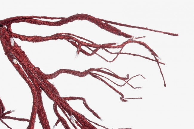 Estructura metálica y revestimiento exterior de papel. Esta rama Beam está equipada con 32 LED de luz cálida, con un tamaño de LED de 3 mm no reemplazable. La longitud del cable de alimentación es de 3 metros. Este producto está diseñado para uso en interiores con certificación IP20. Funciona con 3 pilas AA (no incluidas).