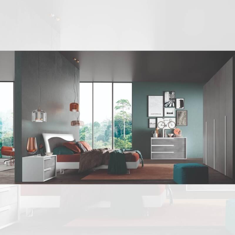 La camera da letto Jolanda cemento e bianco frassinato è la scelta perfetta per creare un ambiente elegante e moderno nella tua casa. Questo set di mobili è composto da un armadio 6 ante battenti, un letto matrimoniale con testiera in legno, un comò 3 cassetti, comodini 2 cassetti e una specchiera quadra.