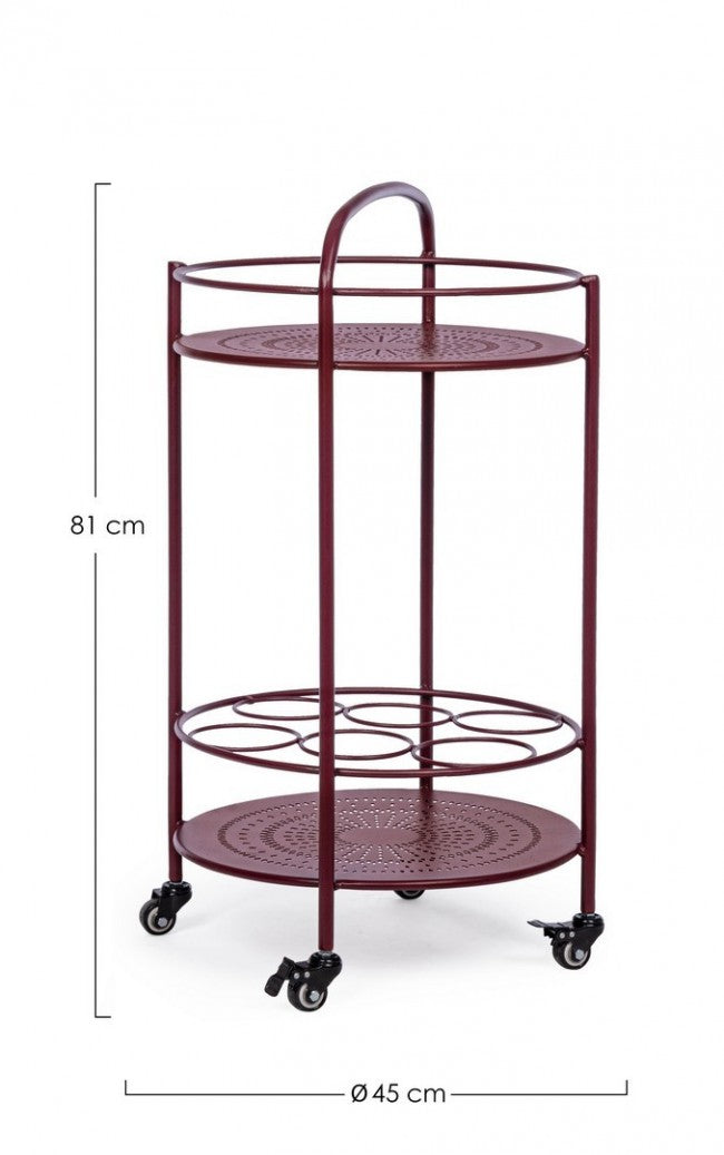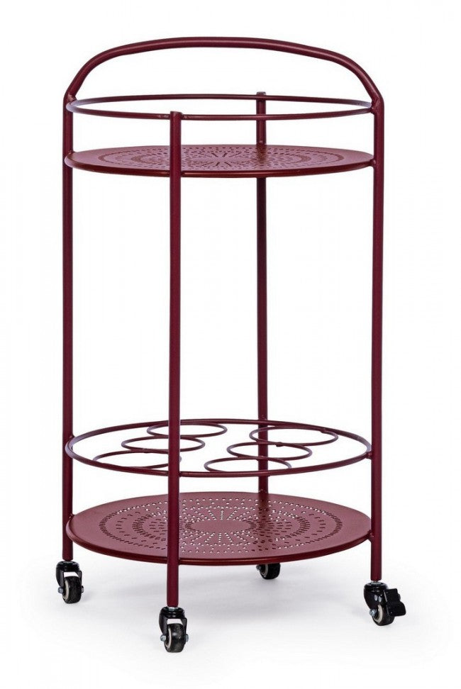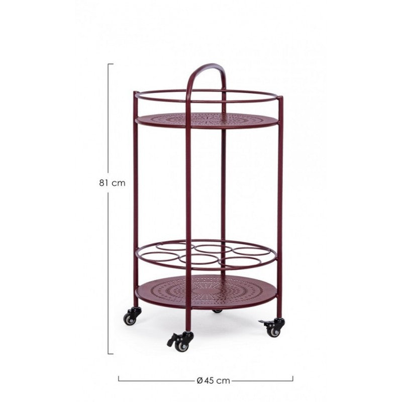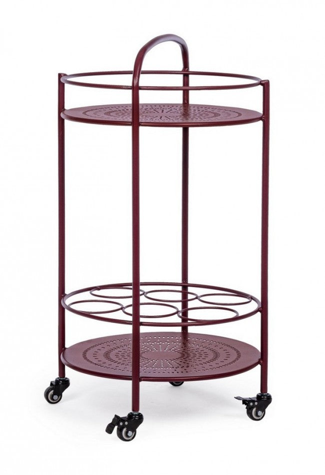 Carro para botellas de acero rojo burdeos