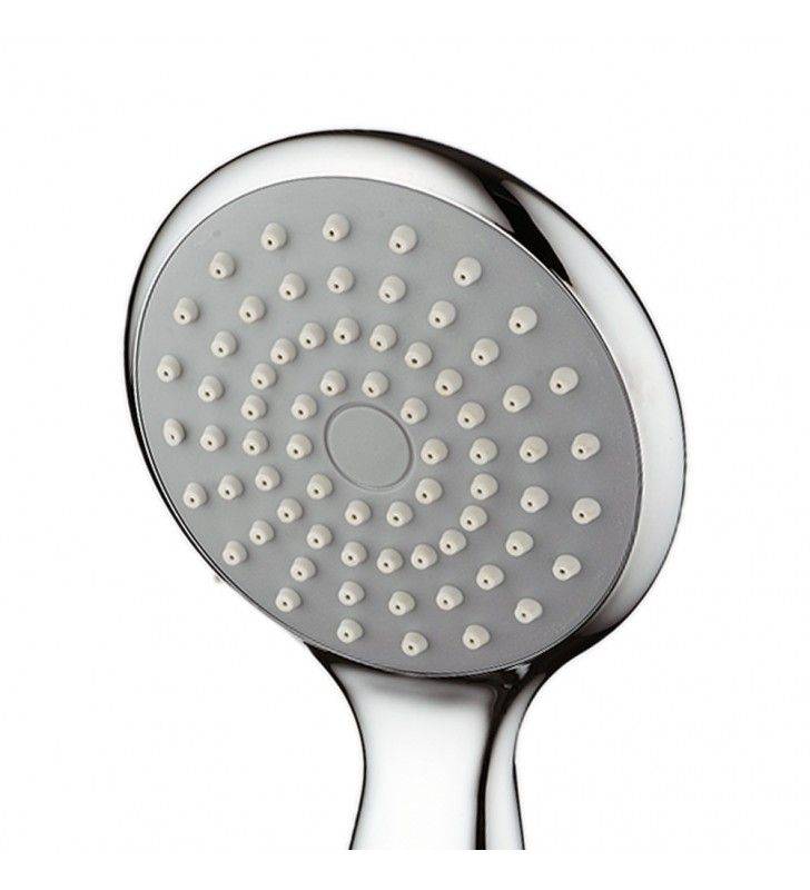 Ducha fabricada en ABS con acabado cromo brillo. La teleducha es antical y está equipada con una función. El diámetro mide 80 mm. La conexión universal, en cambio, es de 1/2". La altura total del producto es de 193 cm. El diseño y las líneas de la ducha son sencillos y se adaptan fácilmente a cualquier tipo de mueble de baño. El embalaje está fabricado de forma amplia reciclables, anteponiendo siempre el respeto al medio ambiente.
