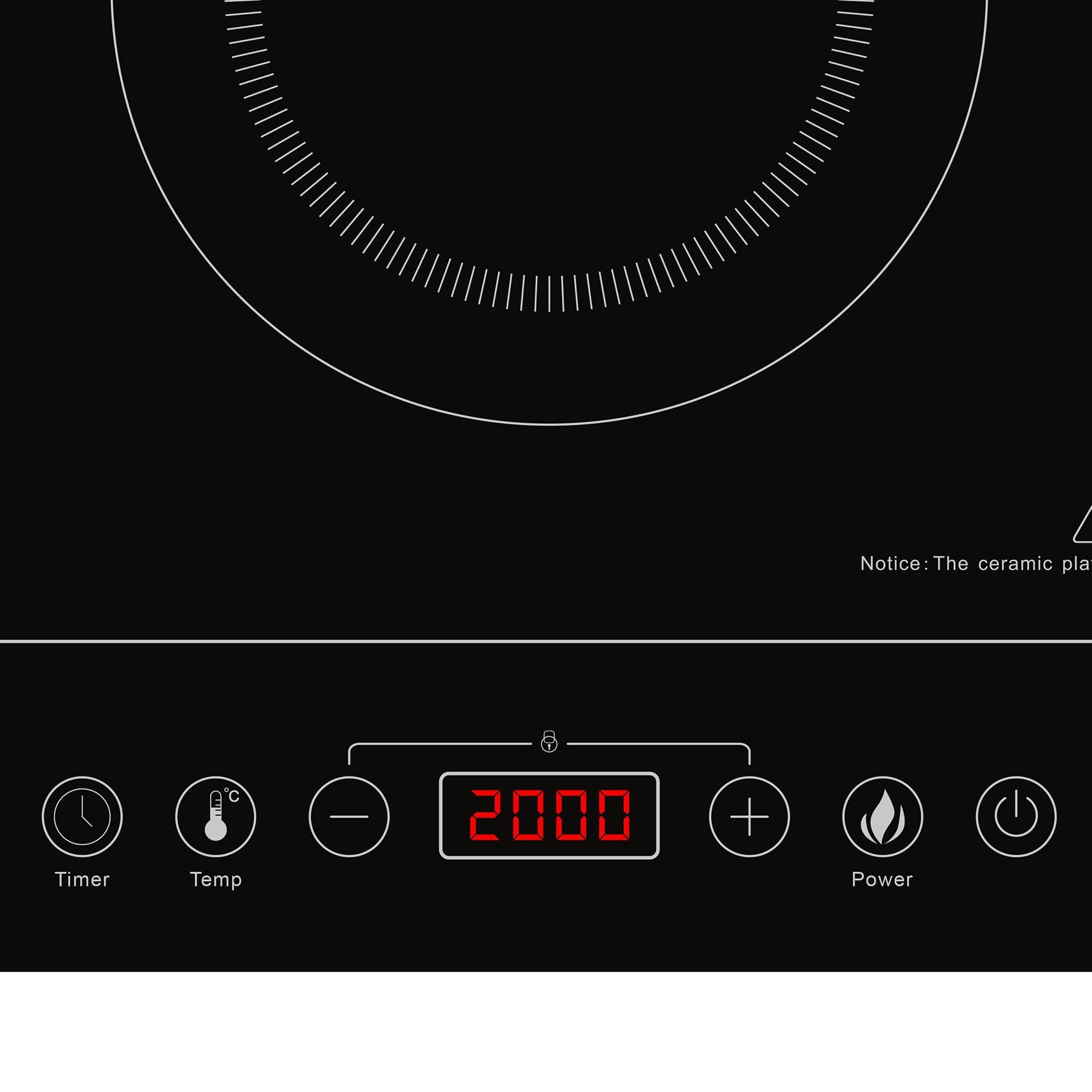 - Ajuste de potencia de placa grande: 200-400-600-800-1000-1200-1400-1600-1800-2000W