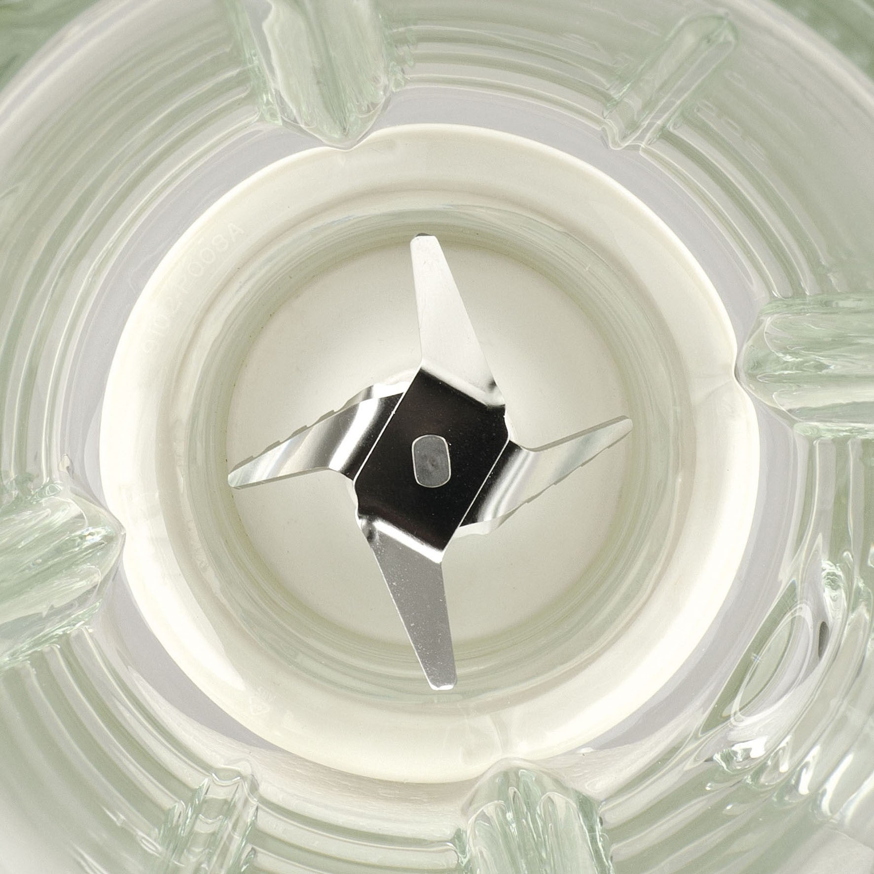 Equipada con un vaso de cristal graduado de 1,5 litros con tapa hermética y mango generoso, la batidora está dotada de un sistema de protección que evita el arranque accidental para garantizar la máxima seguridad de uso.