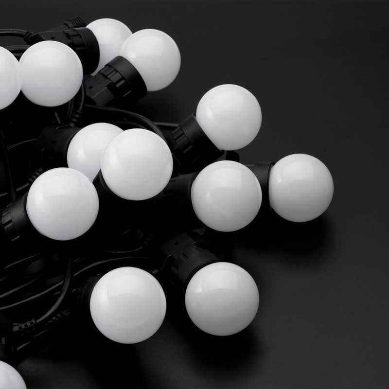 La cadena de luces Twinkly Festoon tiene 20 LED RGB G45. A través de una aplicación o en combinación con sistemas domóticos se pueden crear y gestionar escenarios de luz de colores de todo tipo para crear atmósfera.