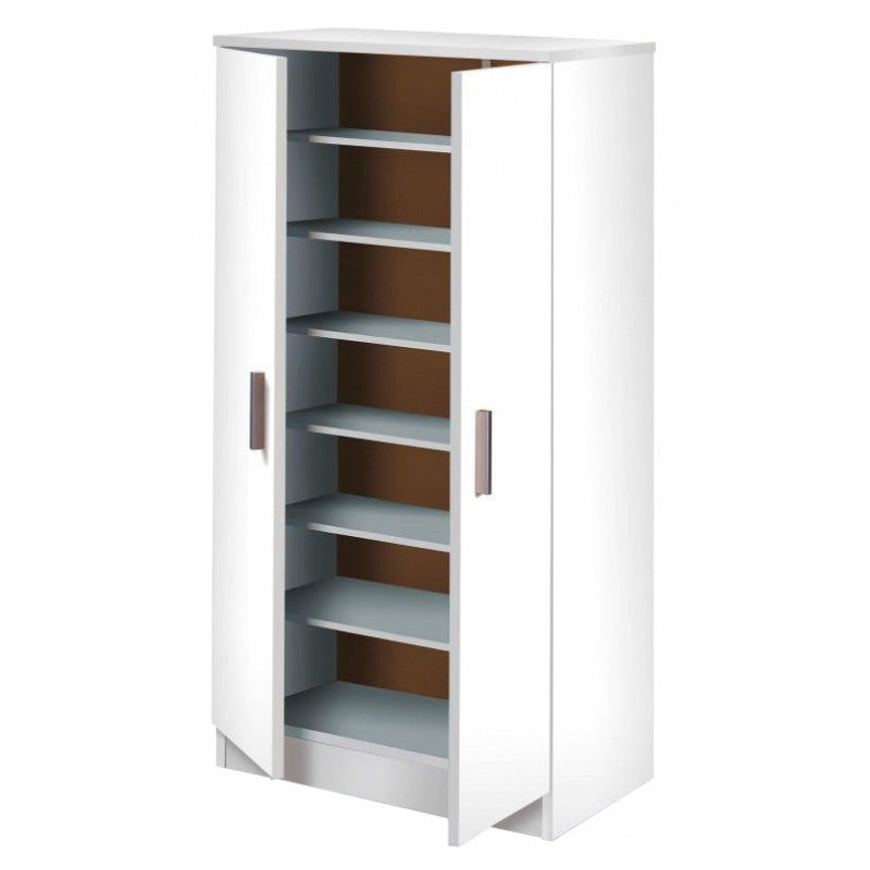 Zapatero móvil que ahorra espacio con seis estantes blancos