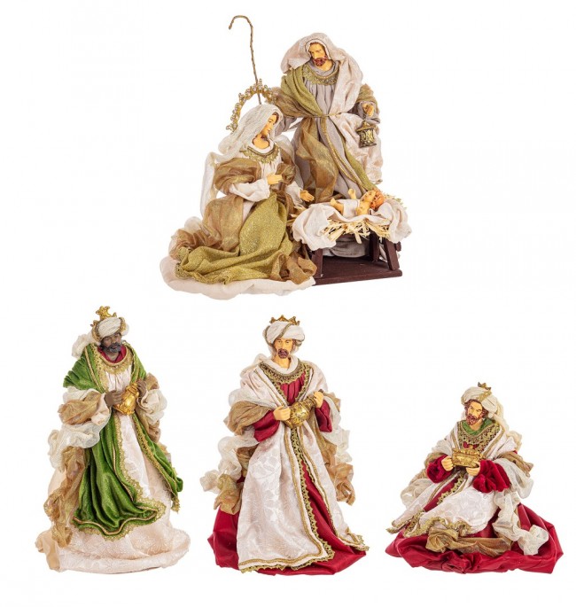Este Belén 6F Raphael Color L está hecho de una combinación de materiales de alta calidad, que incluyen resina, satén, organza, gasa, cáñamo, brocado, terciopelo, encaje, estaño, papel y MDF. Esta representación de la Natividad es una adición elegante y significativa a su decoración navideña.