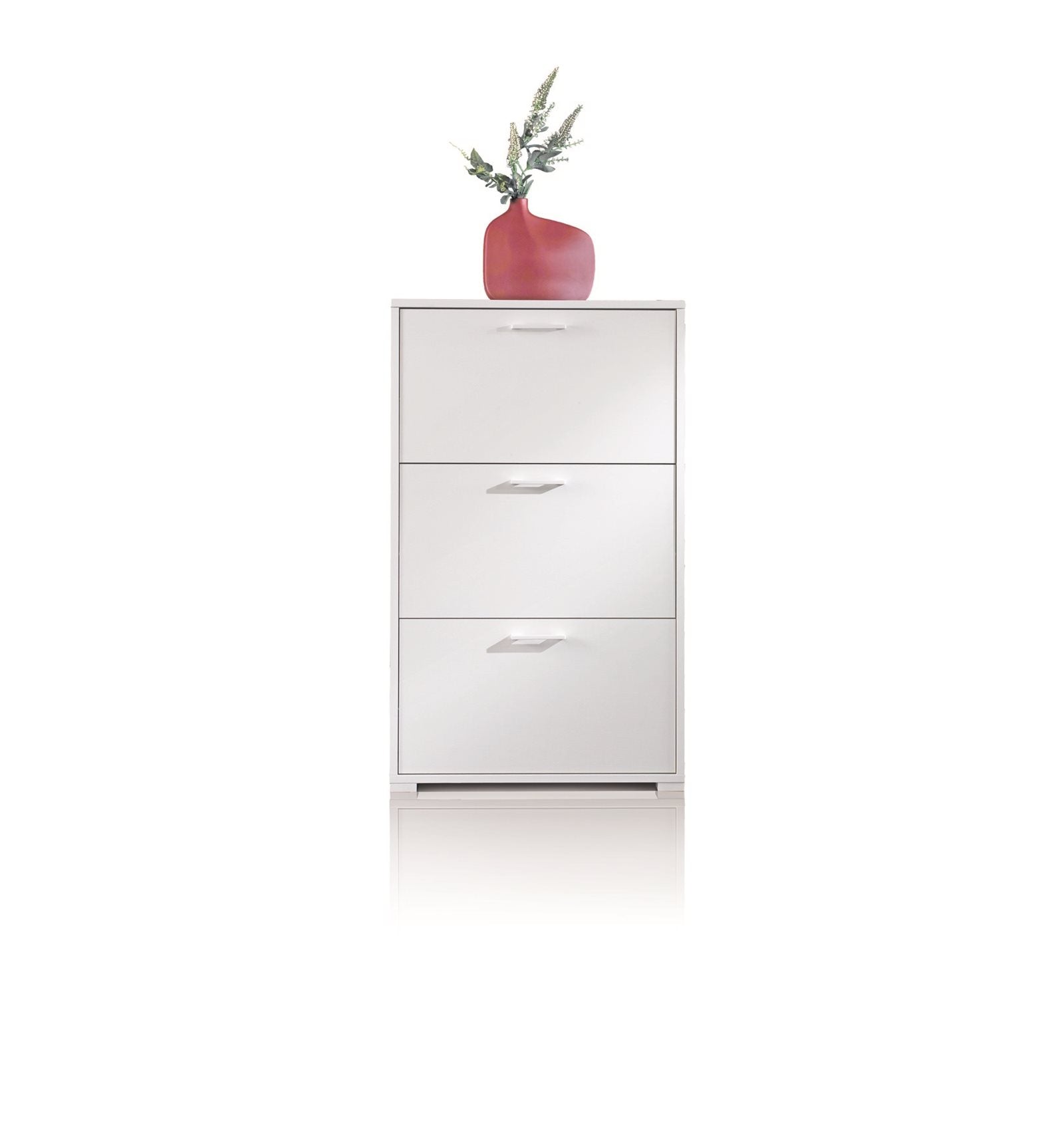 Zapatero de doble fondo con tres puertas para hasta 18 pares de zapatos blanco/blanco
