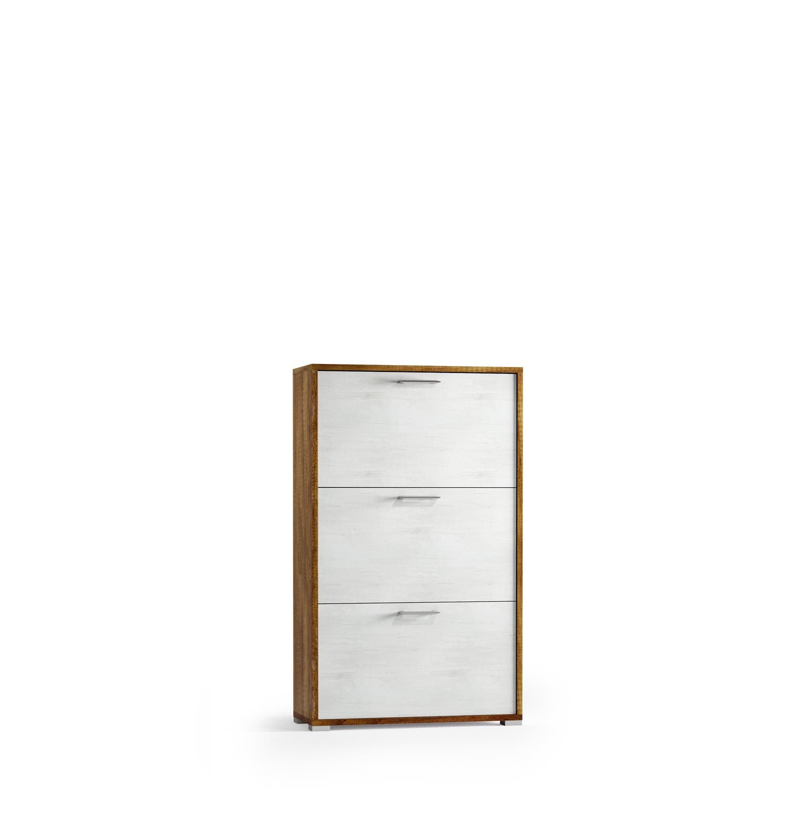 Zapatero De Doble Fondo Con Tres Puertas Hasta 18 Pares De Zapatos Puertas Canyon Blancas Roble Oscuro