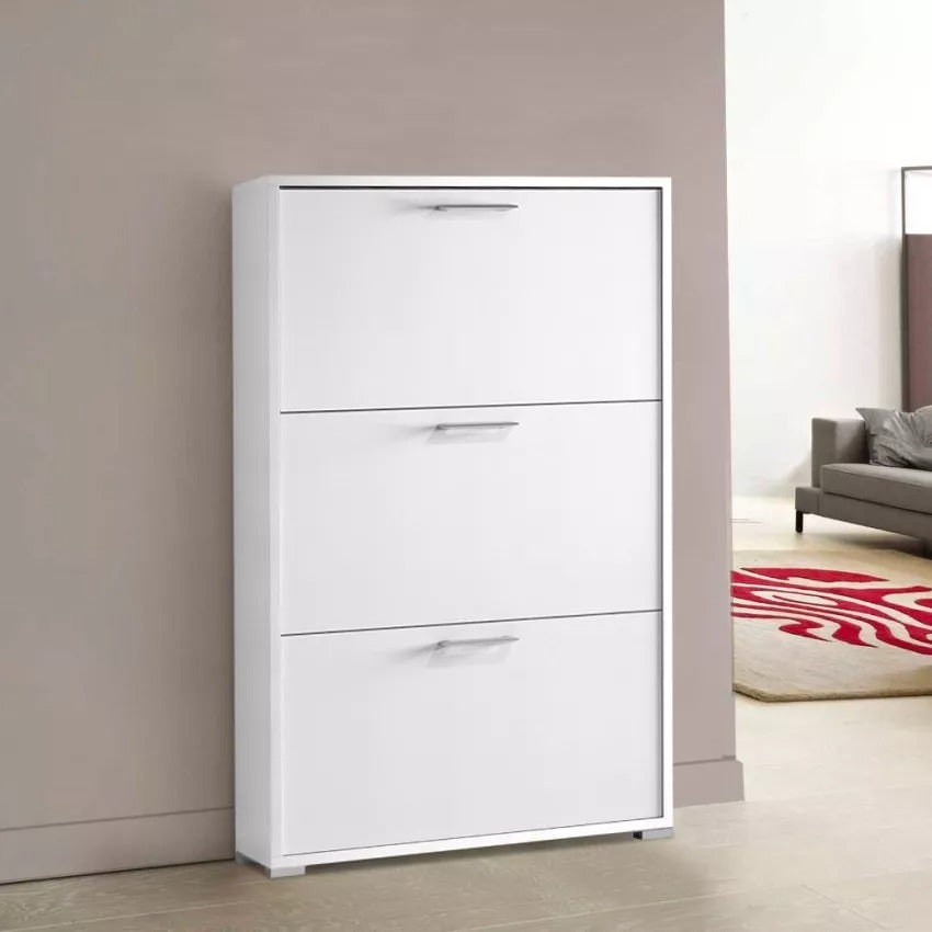 Zapatero con tres puertas para hasta nueve pares de zapatos blanco