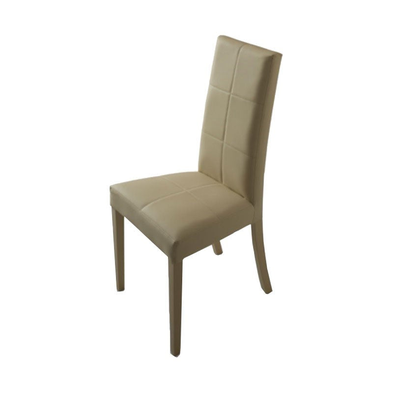 Sedia in legno di faggio rivestita. Modello Giada. Struttura in legno in tinta con seduta imbottita rivestita in ecopelle morbido colore Cappuccino. Dotata di un confortevole schienale alto imbottito con gambe squadrate. Linee geometriche impreziosiscono lo schienale. Leggera, comoda, elegante, autentico made in Italy.
