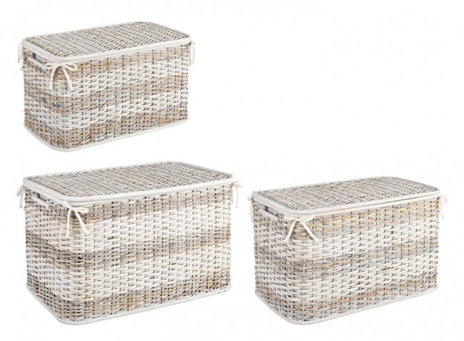 El Set3 Stacy Objects es un conjunto de objetos elaborados con materiales naturales como el ratán y el bambú, combinados con tejidos fabricados en 70% poliéster y 30% algodón. Esta combinación de materiales confiere a los objetos un aspecto elegante y un ambiente acogedor.