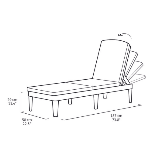 Tumbona de jardín de aluminio con ruedas Antracita CLEOPAS 61x192x h96 cm