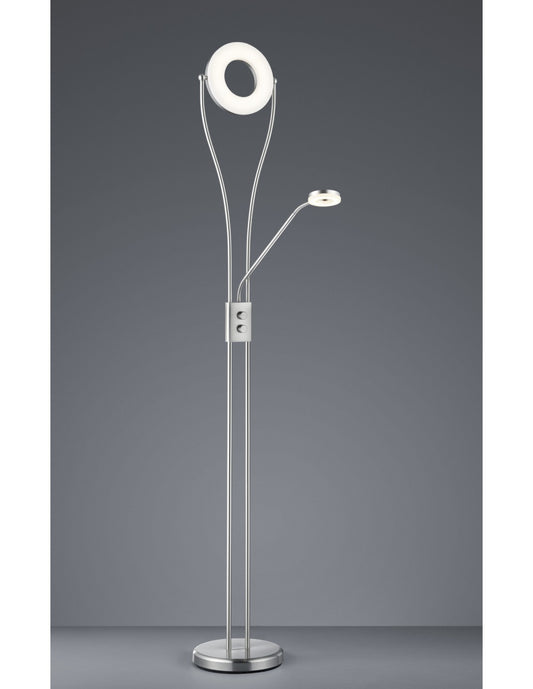 Lámpara de pie LED con foco de lectura regulable Ackbar Nichel Trio Lighting