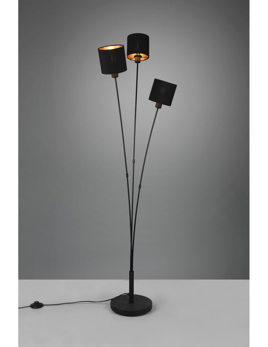 Lámpara de pie Tommy 3 pantallas Tela negra y dorada Trio Lighting
