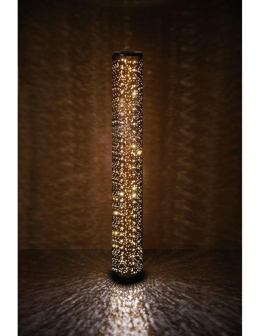 Lámpara de Pie Tela Negra Dorada LED Cilindro Efecto Estrella Vintage Taco Trio Lighting