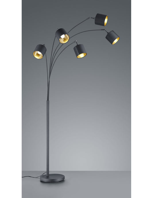 Lámpara de pie Tommy Nero 5xE14 Negro-Oro Tela Al. 200 cm Trio Lighting