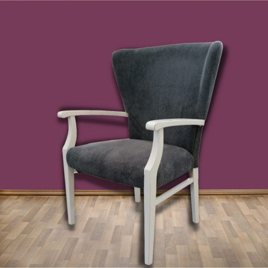 Sillón de madera y tela gris con respaldo envolvente DUMBO 69x66x h103 cm