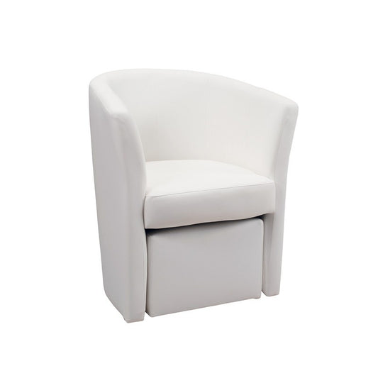 Poltrona imbottita rivestita in ecopelle bianca e pouff estraibile 64x63xh.76 EFFEZ
