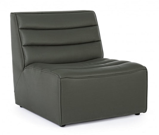 Sillón acolchado tapizado en ecopiel gris y puf desenfundable 64x63xh.76