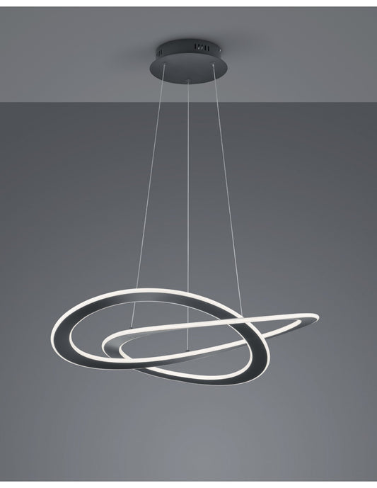 Suspensión moderna 2 círculos LED Oakland Antracita Trio Lighting
